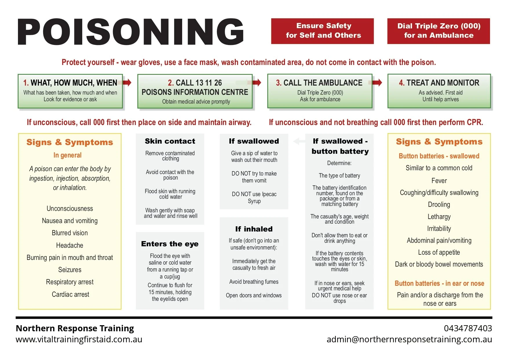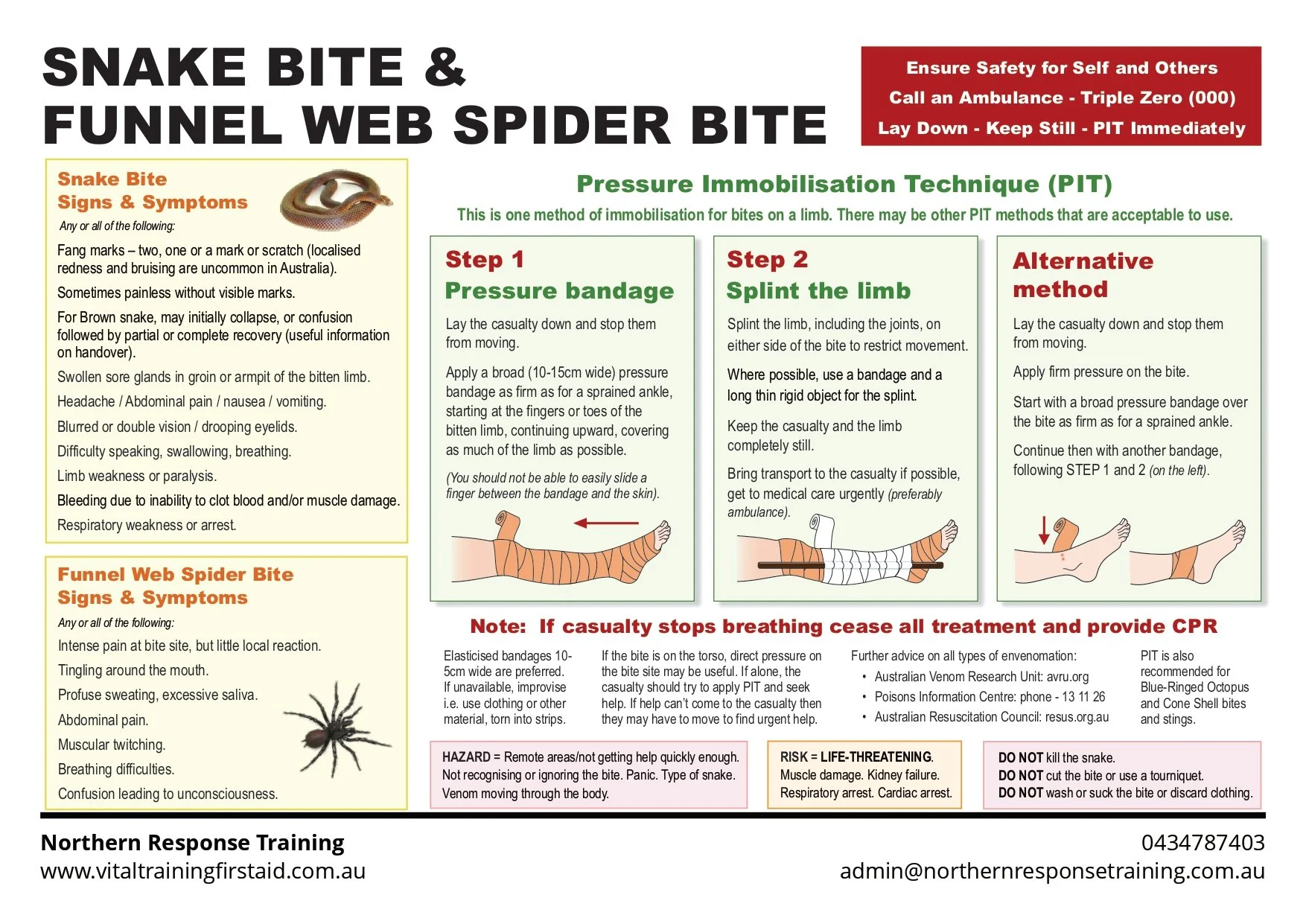 When it comes to first aid, having access to valuable resources is crucial. At Northern Response Training, our collection of free first aid charts serves as an essential tool for anyone wanting to be prepared in emergency situations. These charts cover a wide range of topics including CPR, child illness, burns, snake bites, soft tissue injuries, bleeding, and much more. These charts are designed to be informative, easy to understand, and useful for a variety of scenarios. Whether you’re a parent, caregiver, teacher, or simply an individual who wants to be prepared, our first aid charts are an invaluable resource.